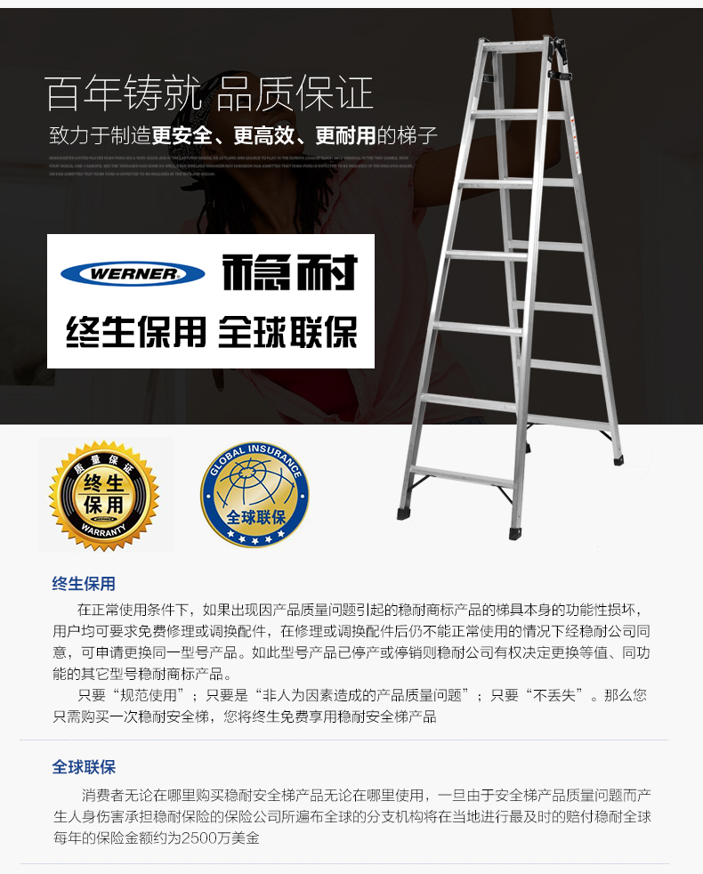 稳耐werner梯子家用铝合金三步人字梯0.7米登高爬梯小梯蹬 150BCN 单位:把