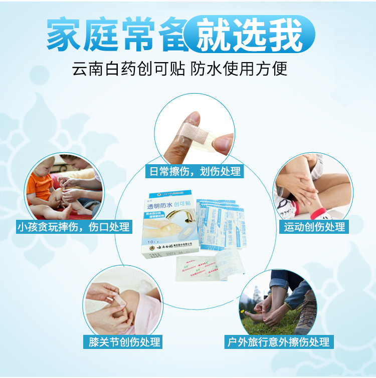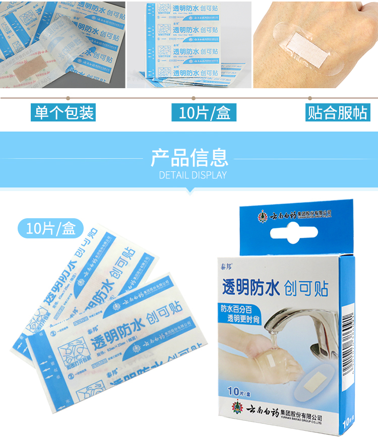 商品名称:云南白药 创可贴透明防磨脚防水透气医用大号可爱创可贴洗澡止血贴