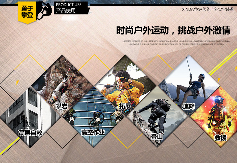 商品名称:欣达 户外攀岩装备速降高空作业保护器挽索牛尾防坠落保险绳带 XD-D9305