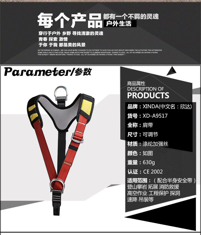 商品名称:欣达 户外救援高空作业探洞装备攀岩安全带上半身保险带肩带可连接 XD-A9517