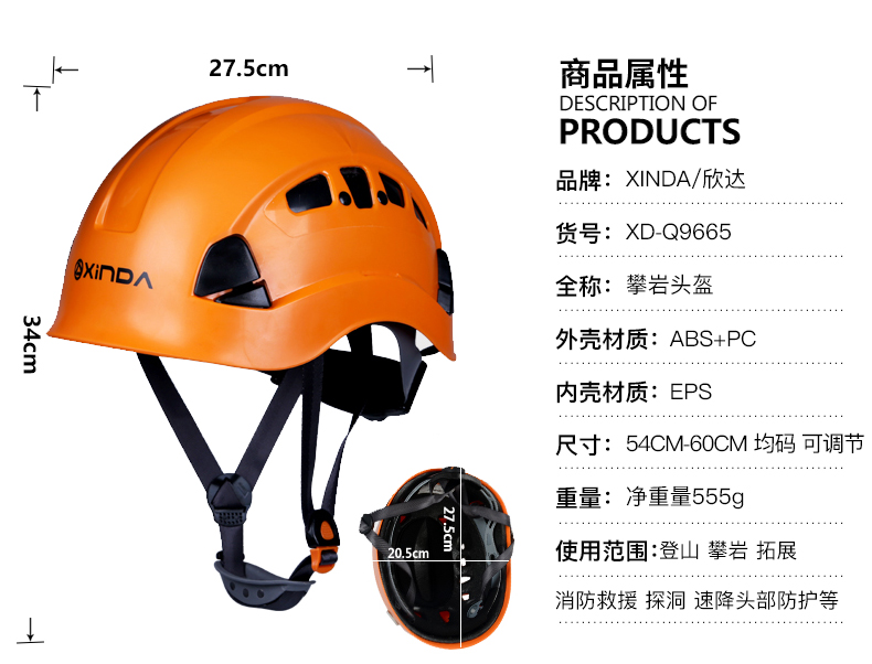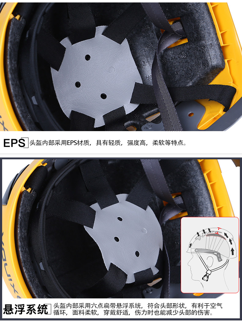 商品名称:欣达 探洞工业防护头盔高空作业救援头盔户外速降攀岩保护安全帽 XD-Q9665