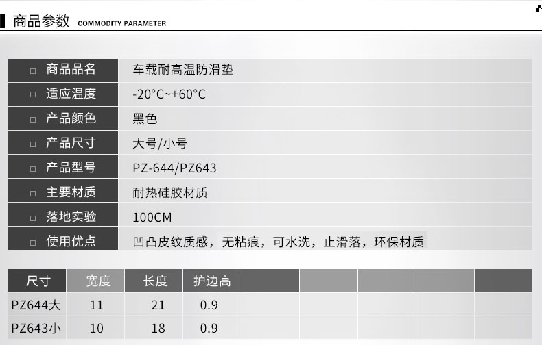 商品名称:YAC 汽车防滑垫 大小号 耐高温防护垫 车载车用 PZ644PZ643