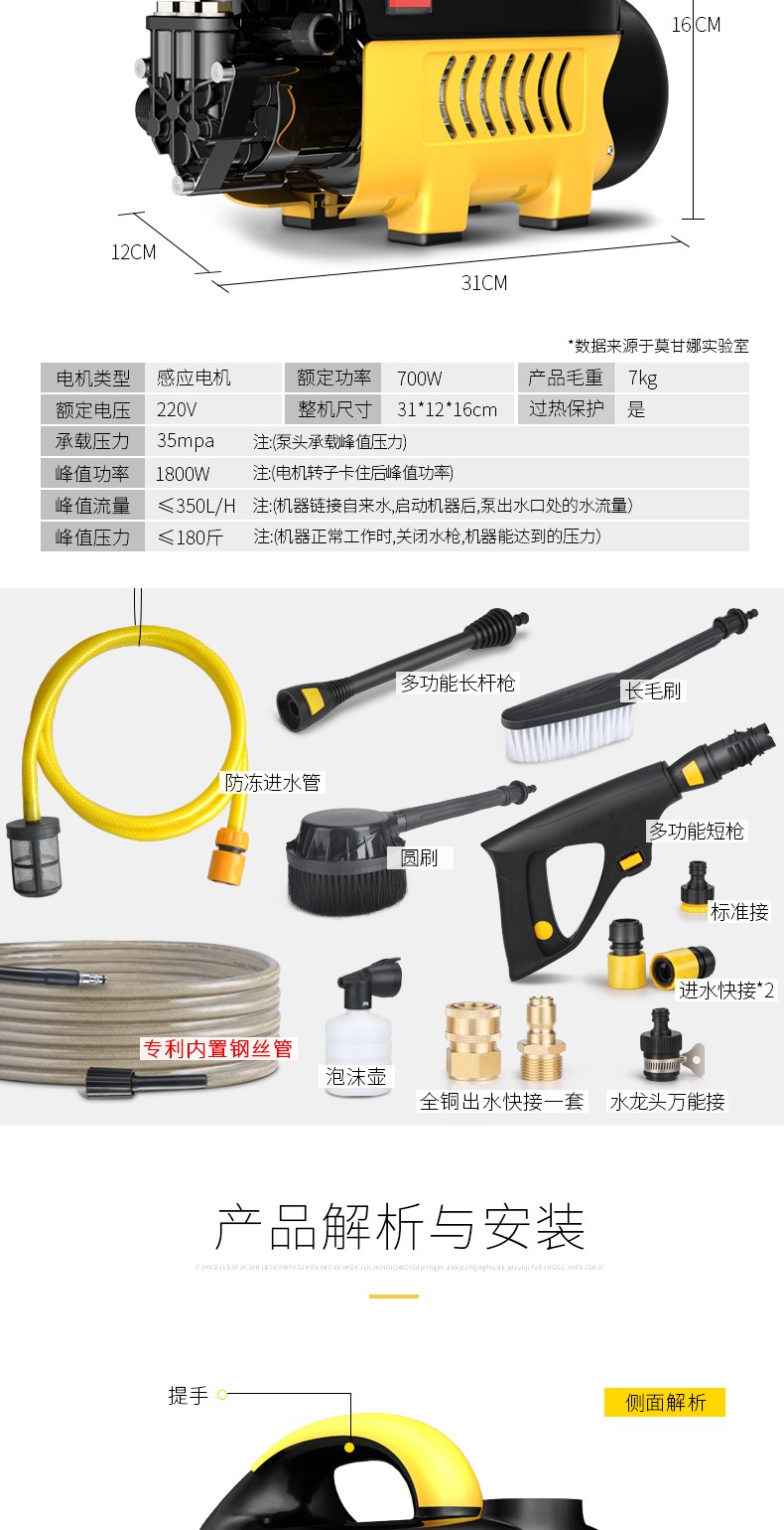 商品名称:莫甘娜 洗车机高压家用220V全自动洗车神器便携式刷车泵水枪清洗机