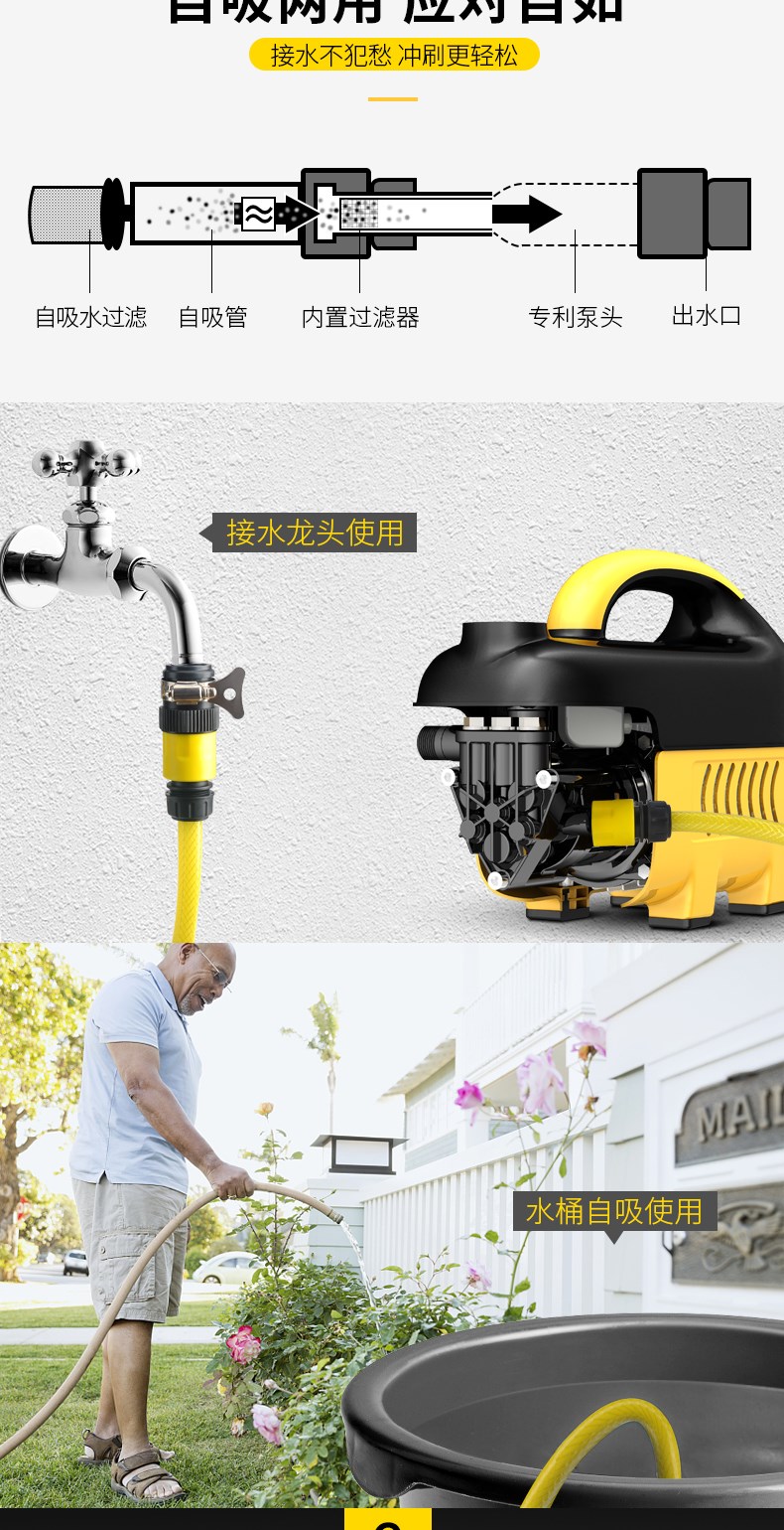 莫甘娜 洗车机高压家用220V全自动洗车神器便携式刷车泵水枪清洗机