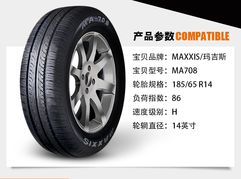 商品名称:玛吉斯 汽车轮胎MA708 185/65R14适配凯越/HRV五菱宏光悦翔标致207