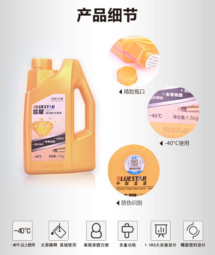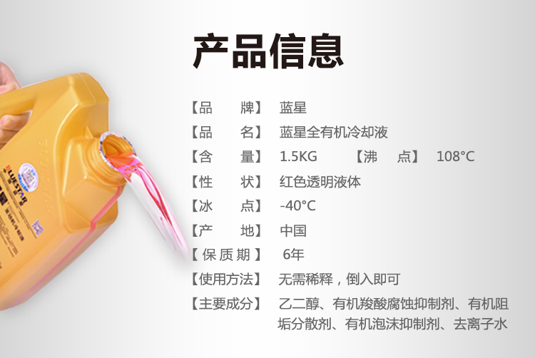 商品名称:蓝星 全有机防冻液水箱宝-40°C/1.5升发动机冷却液