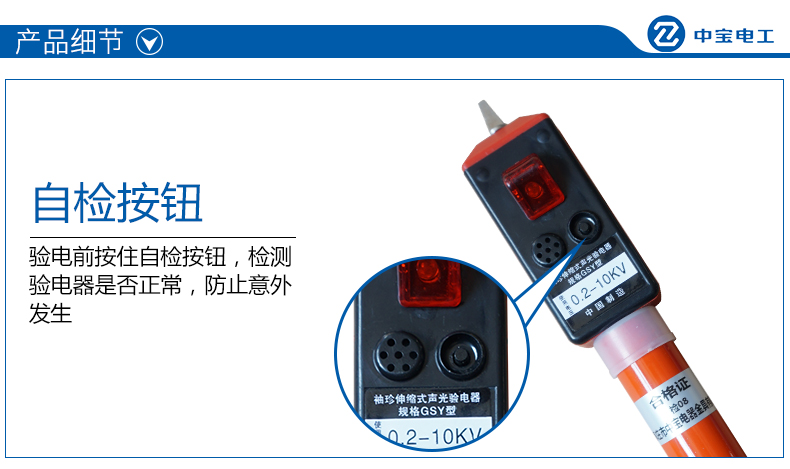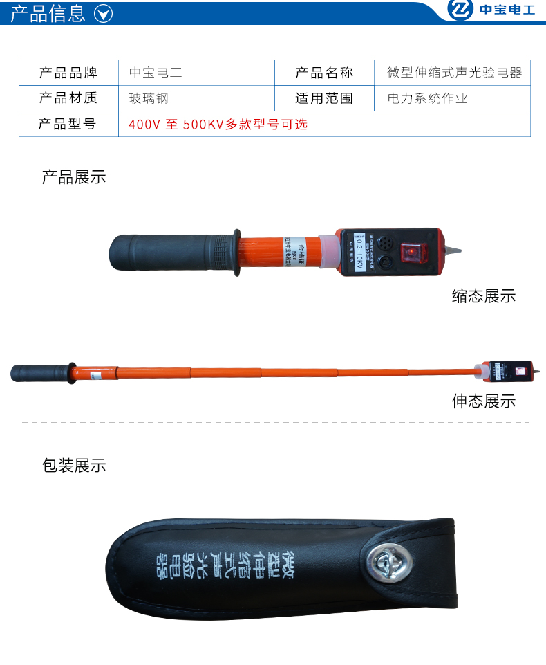 商品名称:中宝 袖珍型伸缩验电器 0.2-10KV高低压伸缩验电器 GSY型