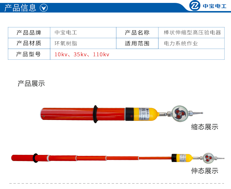 商品名称:中宝 风车式高压验电器 棒状式伸缩高压验电器10KV35KV110KV GDY-型