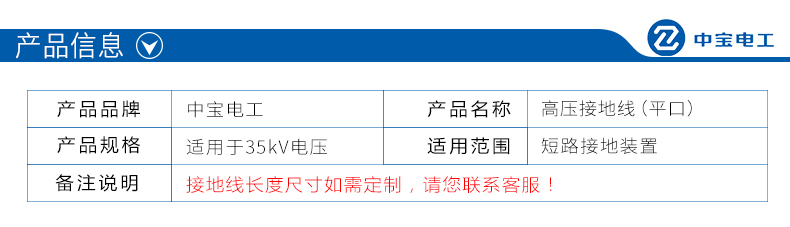 商品名称:中宝 35KV室内高压接地线平口螺旋接地线 变电站用25方接地线 000