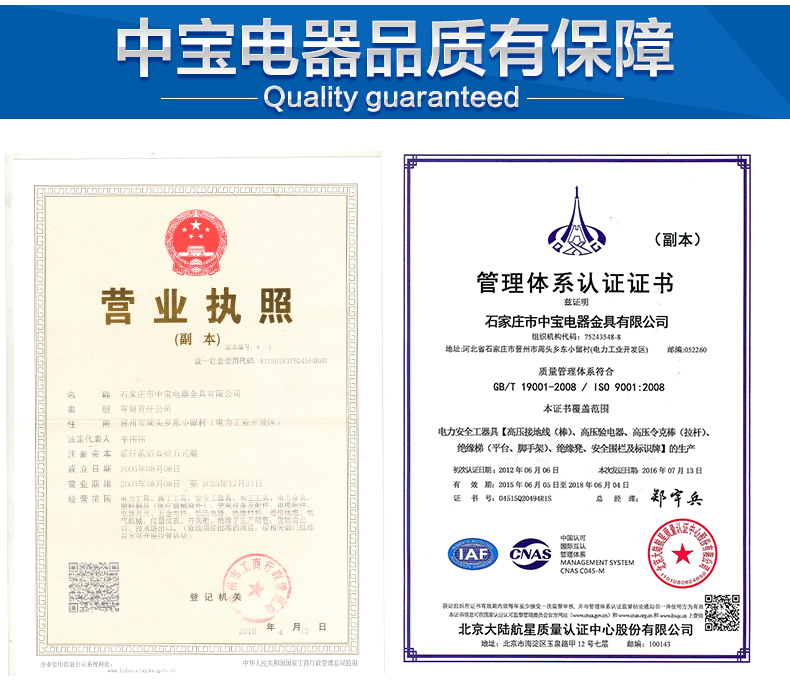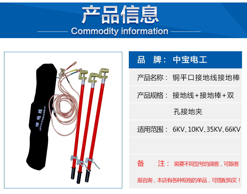 商品名称:中宝 平口接地线室内接地棒6kv10kv35kv66kv铜线 手握接地棒