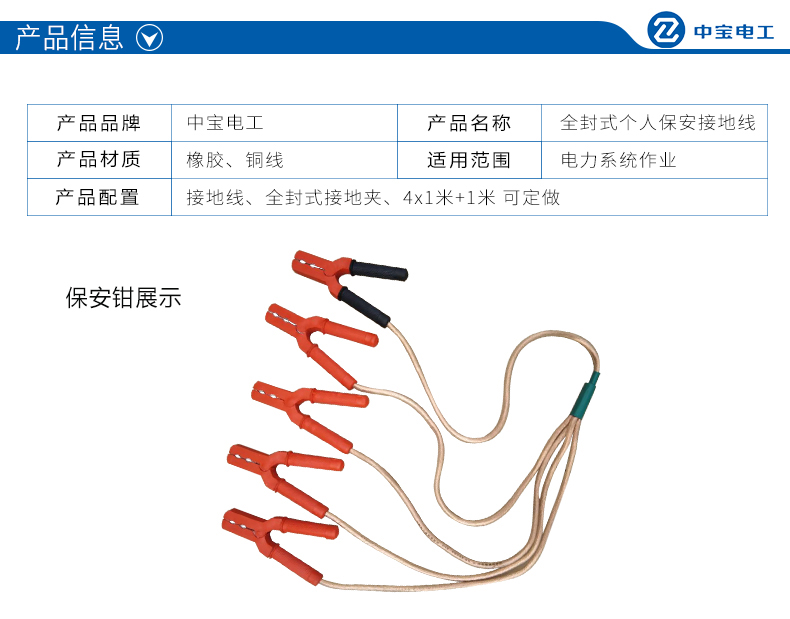 商品名称:中宝 个人保安线矿用接地钳 全封式保安线 个人保安接地线