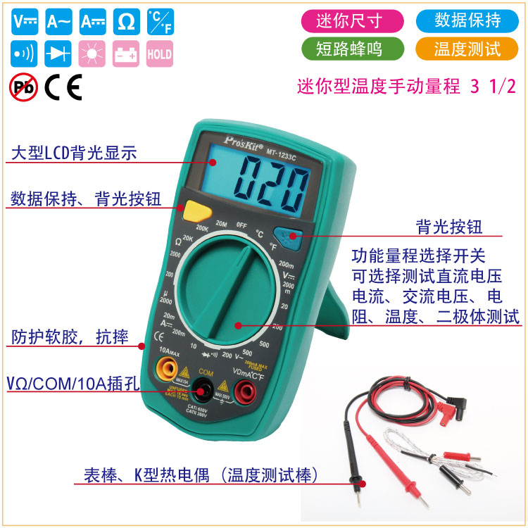 宝工 #39;kit 数字型 档位精准防烧型万能表数显 MT-1233C-C