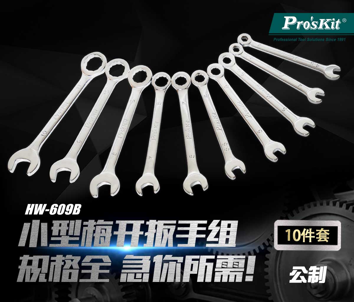宝工 #39;skit 小型梅开扳手组(10支组)公制 HW-609B