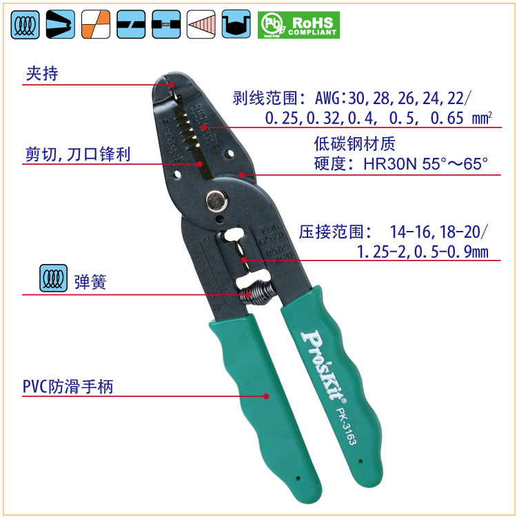 商品名称:宝工 #39;skit 7合1剥线钳 剪剥压线钳 8PK-3163