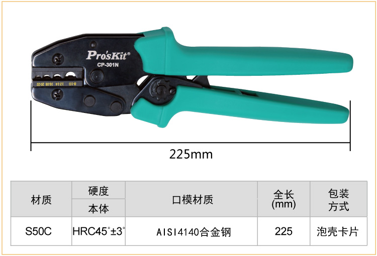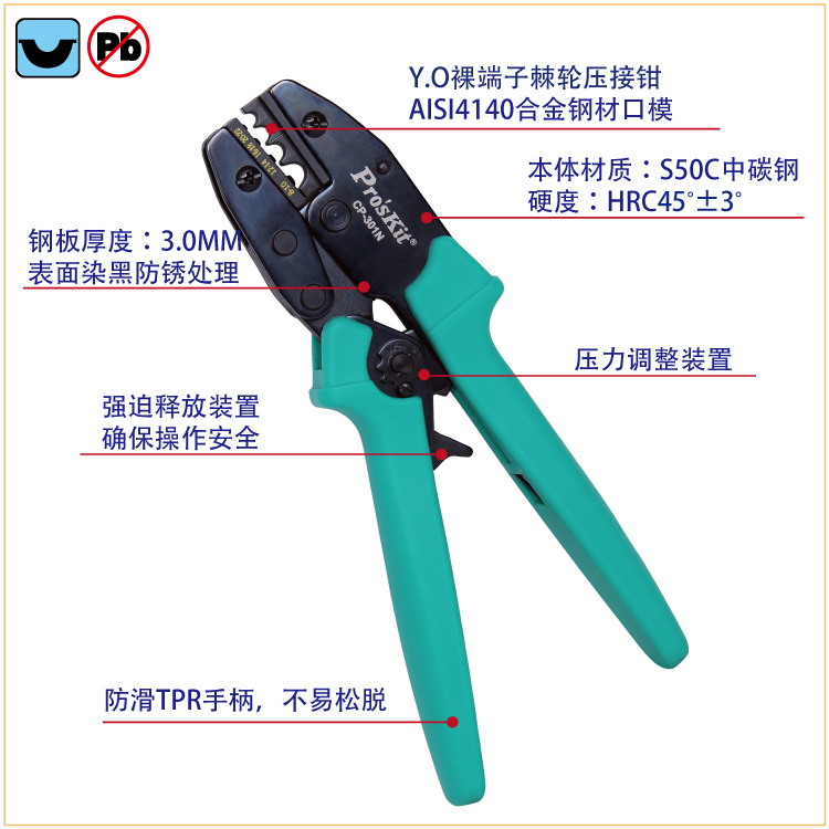 宝工 CP-301N Y.O裸端子棘轮压线钳 冷压接钳 端子钳 进口