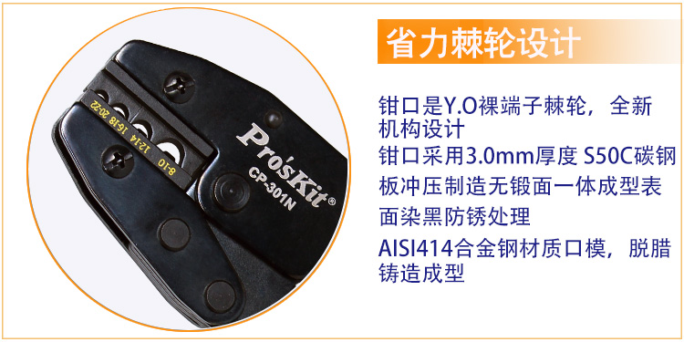 商品名称:宝工 CP-301N Y.O裸端子棘轮压线钳 冷压接钳 端子钳 进口