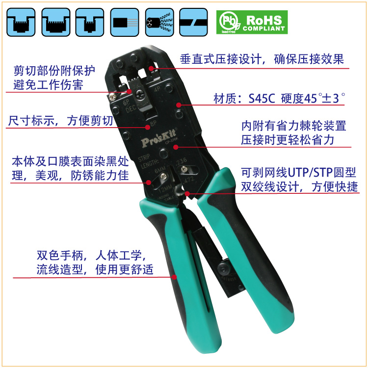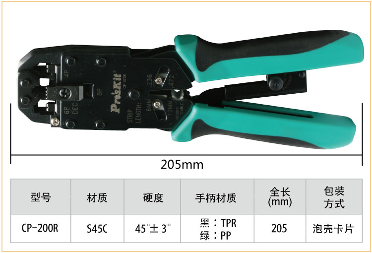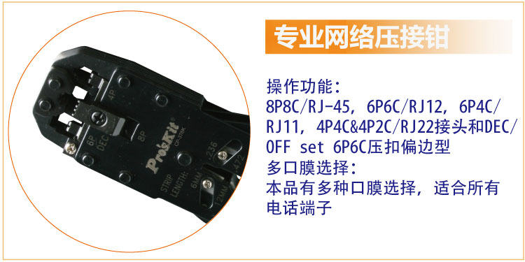 商品名称:宝工 #39;skit CP-376K 4/6/8P三口棘轮电话端子压接钳 网线钳