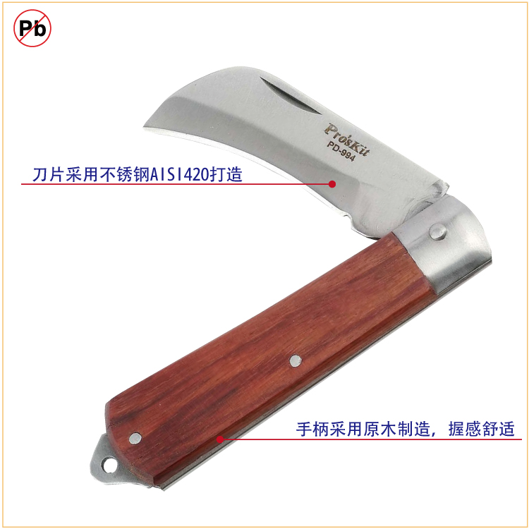 宝工 不銹钢电工刀 弯刃电工刀具 剥线刀 木柄 折叠刀 PD-994