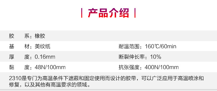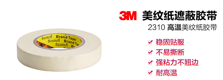 商品名称:3M 汽车喷涂无痕纸胶带 遮蔽带 美纹胶 耐高温1600°C 2310