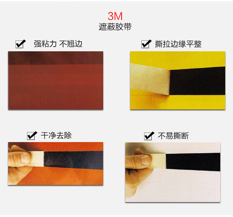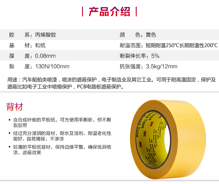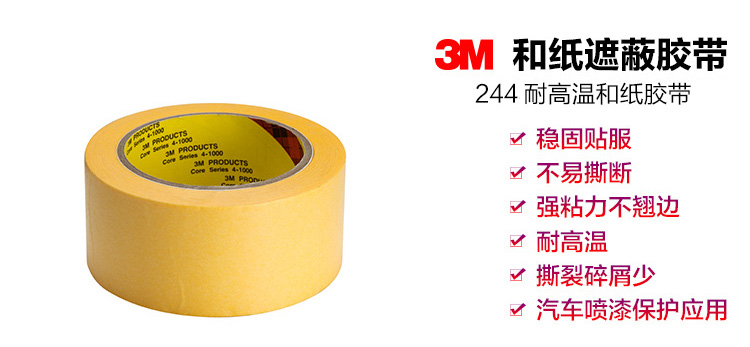 商品名称:3M 汽车喷涂无痕纸胶带 和纸遮蔽带 美纹胶 耐高温200°C 244