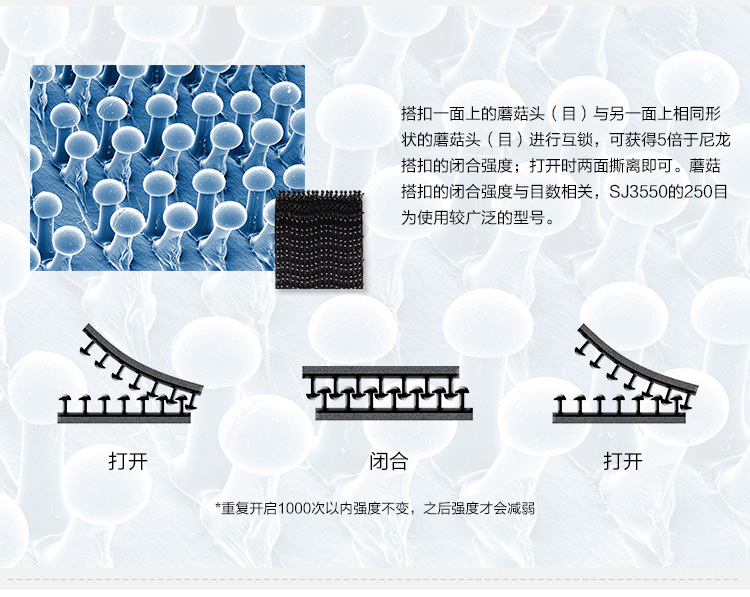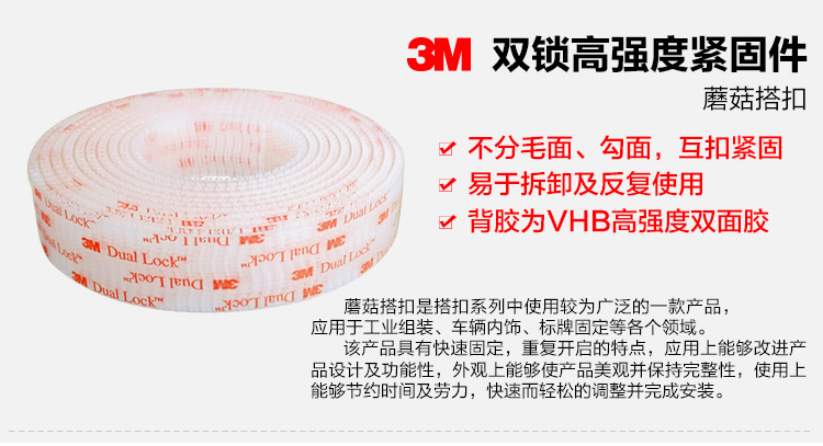 商品名称:3M 透明Dual Lock蘑菇搭扣 VHB背胶尼龙扣带魔术贴 SJ3561/SJ3560