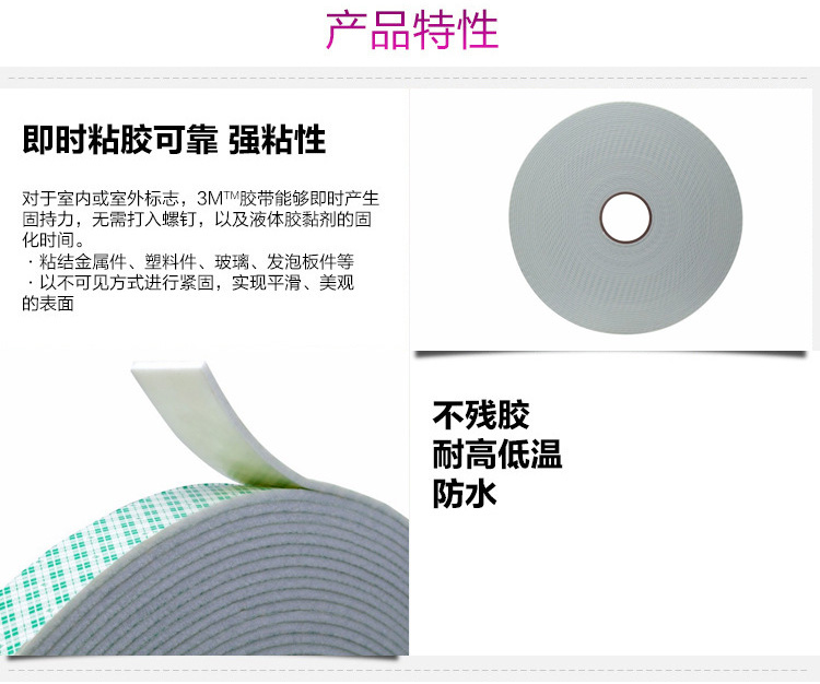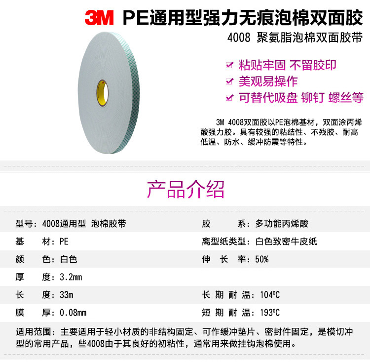 商品名称:3M聚氨脂泡棉双面胶带 家具 办公 汽车粘胶 厚度3.2毫米 4008