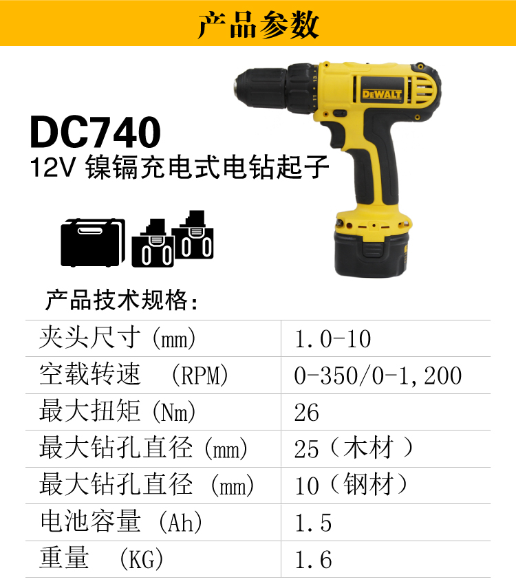 商品名称:得伟 充电钻 DC740