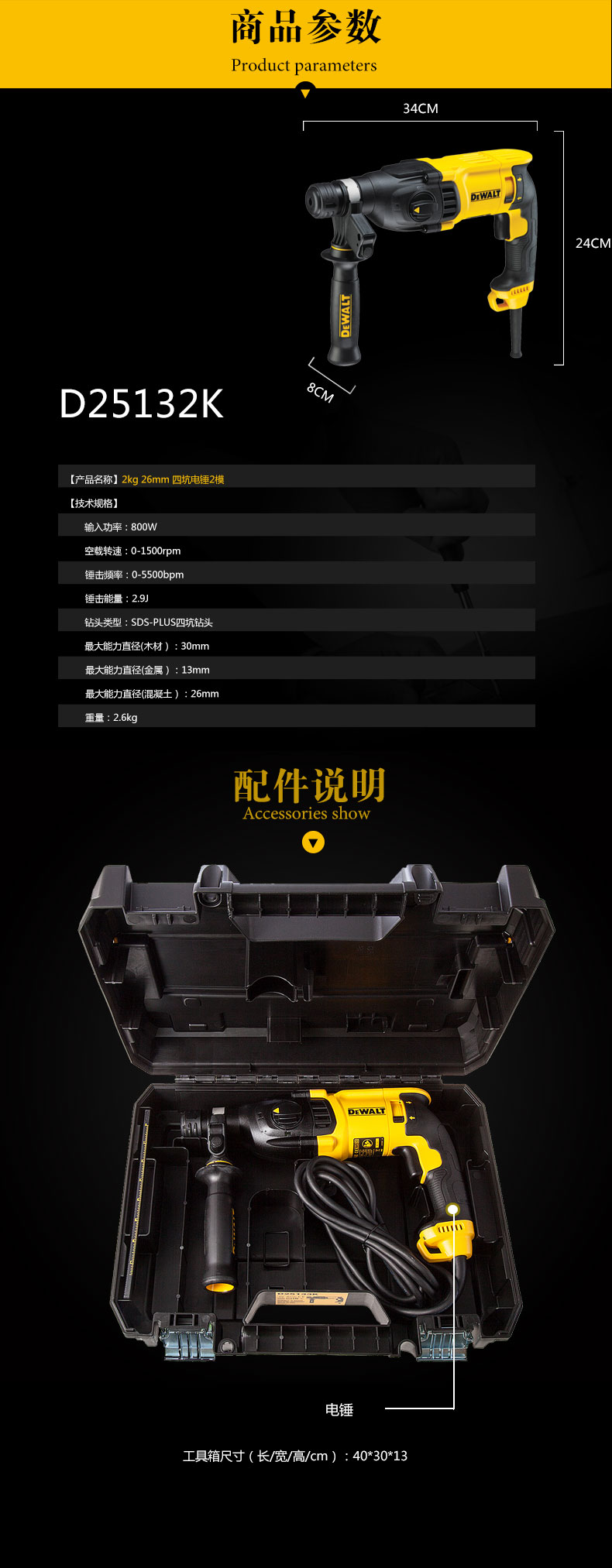 商品名称:得伟 电锤 D25132K(二模)/D25133K(三模)