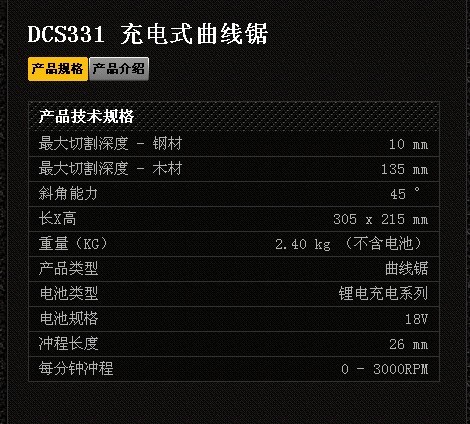 商品名称:得伟 充电式曲线据 DCS331M2