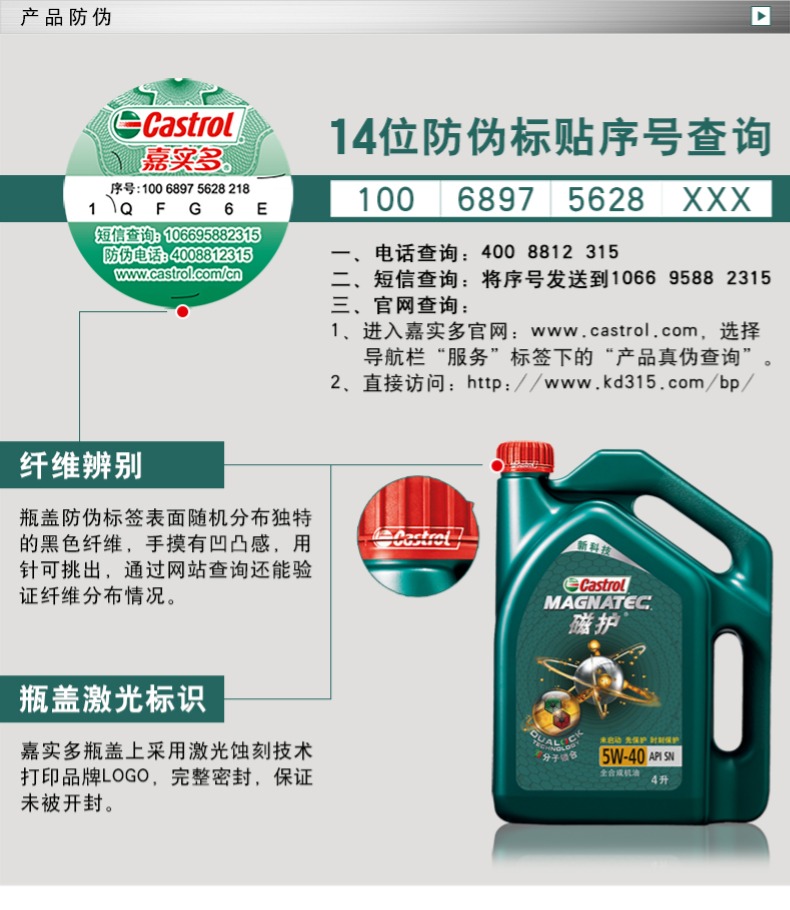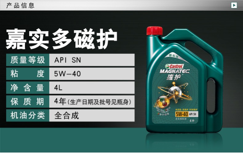 商品名称:嘉实多 磁护 全合成机油 SN 5W-40 4L+引擎洁霸