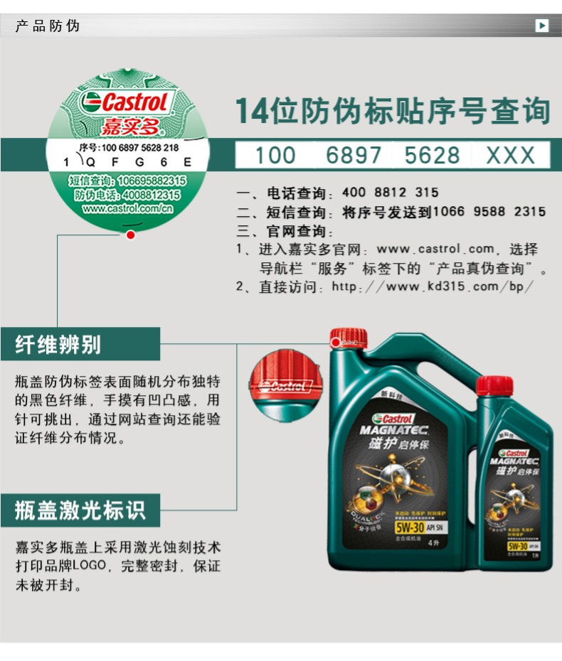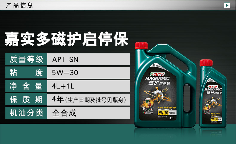 商品名称:嘉实多 磁护启停保全合成机油润滑油SN5W-30 4L+1L