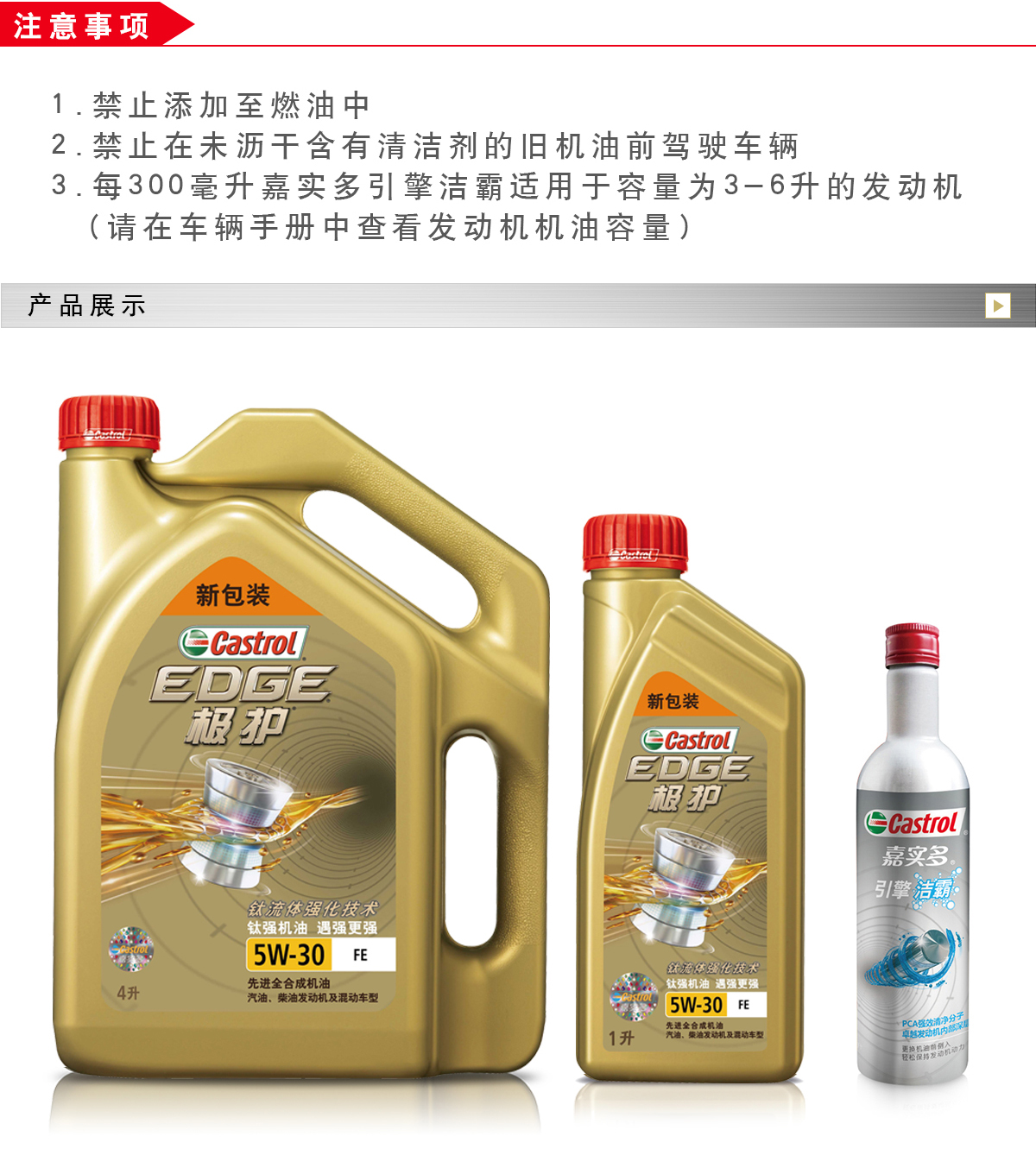 商品名称:嘉实多 极护 全合成机油 SN 5W30 4L+1L+引擎洁霸套装