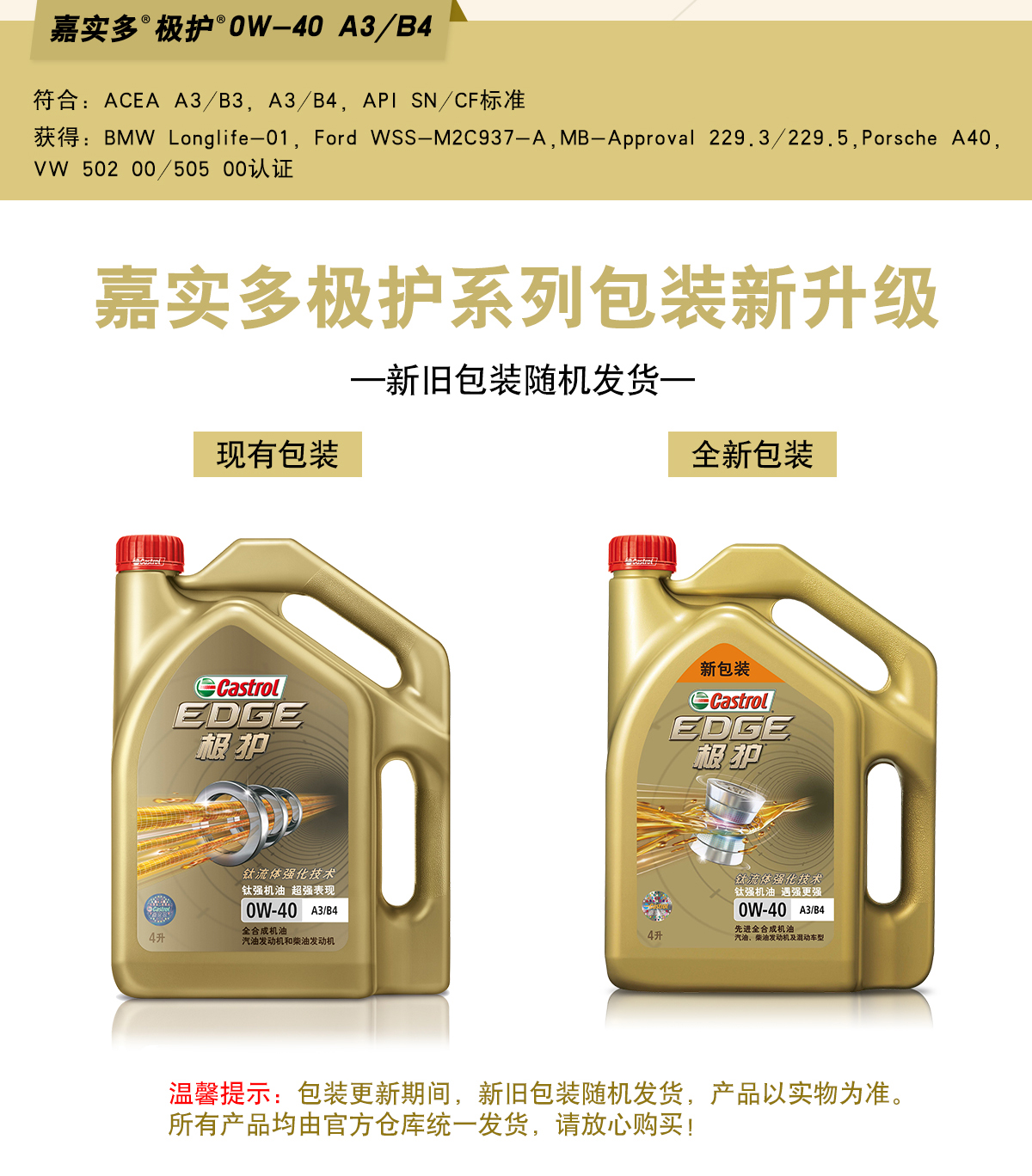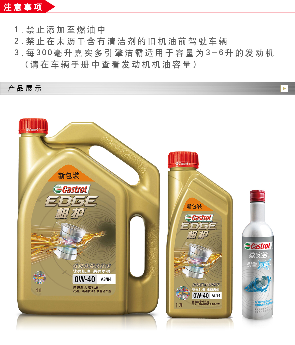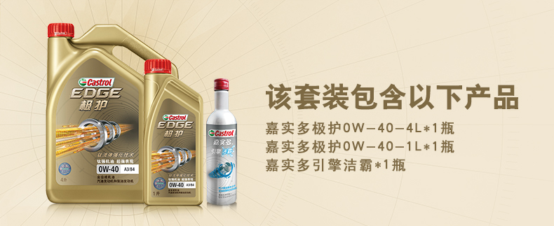 商品名称:嘉实多极护 全合成机油 SN 0W40 4L+1L+引擎洁霸套装