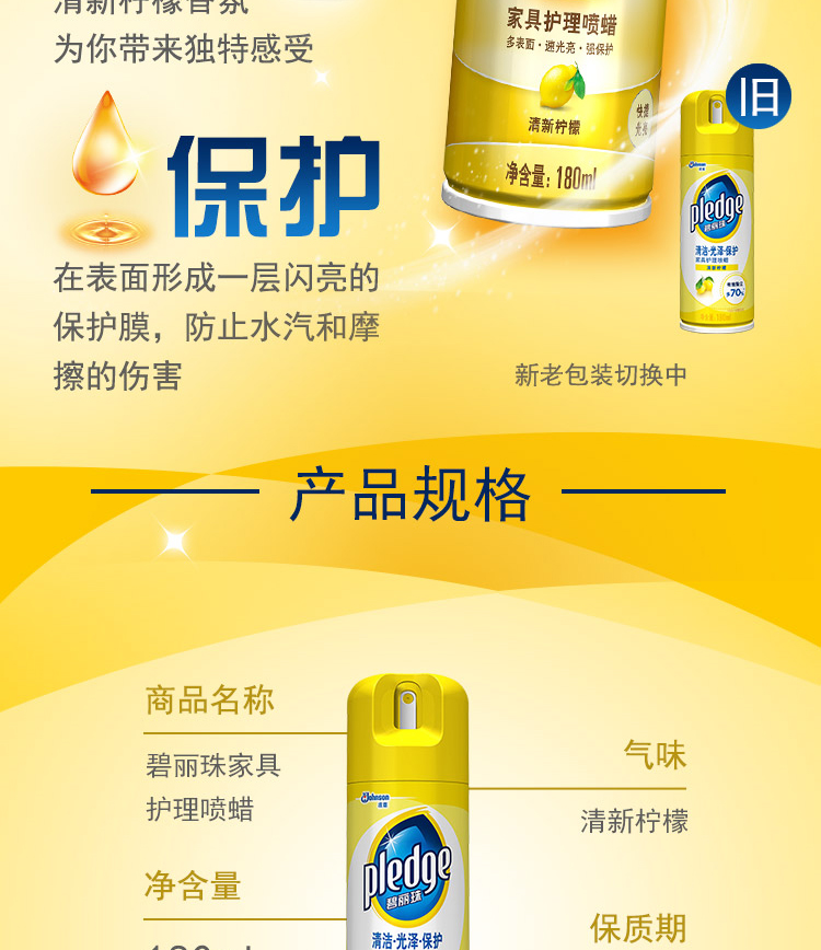商品名称:碧丽珠 家具护理喷蜡(柠檬)清洁 光泽 保护 180ml