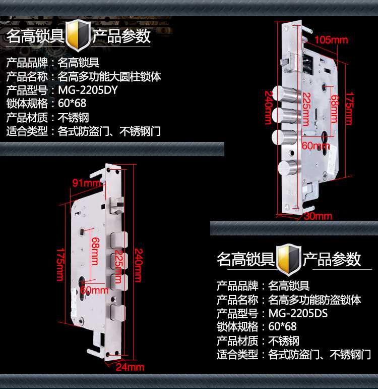 商品名称:名高 防盗门锁体国标304不锈钢多功能锁体单活双活双快带反 6068