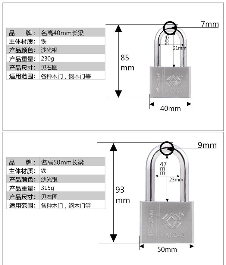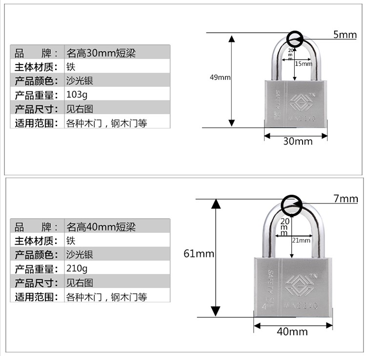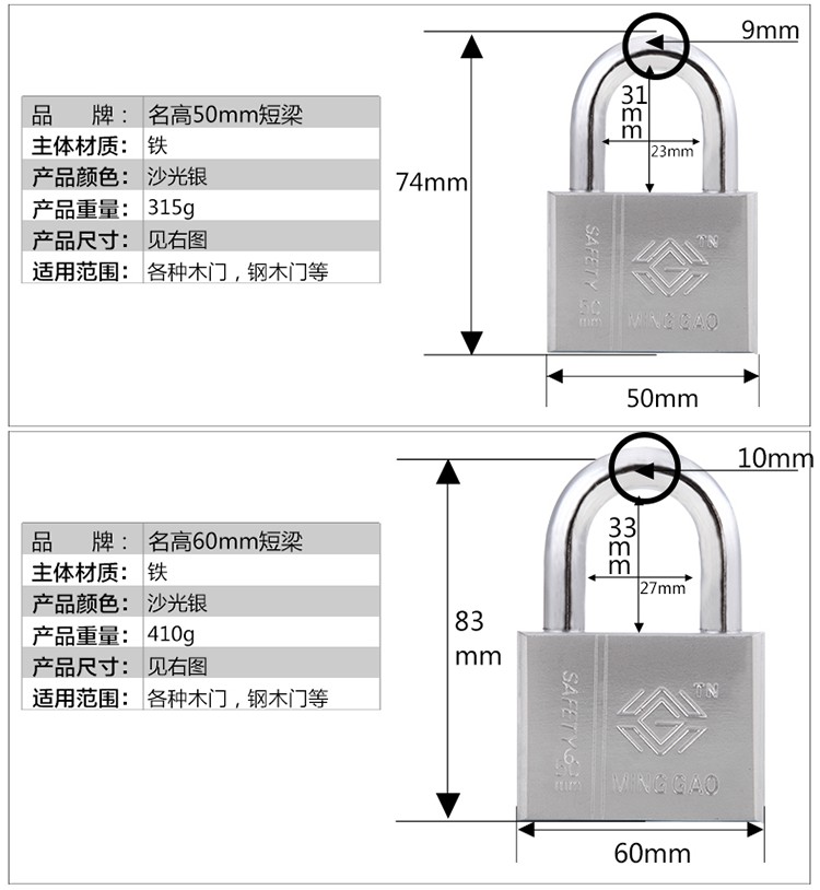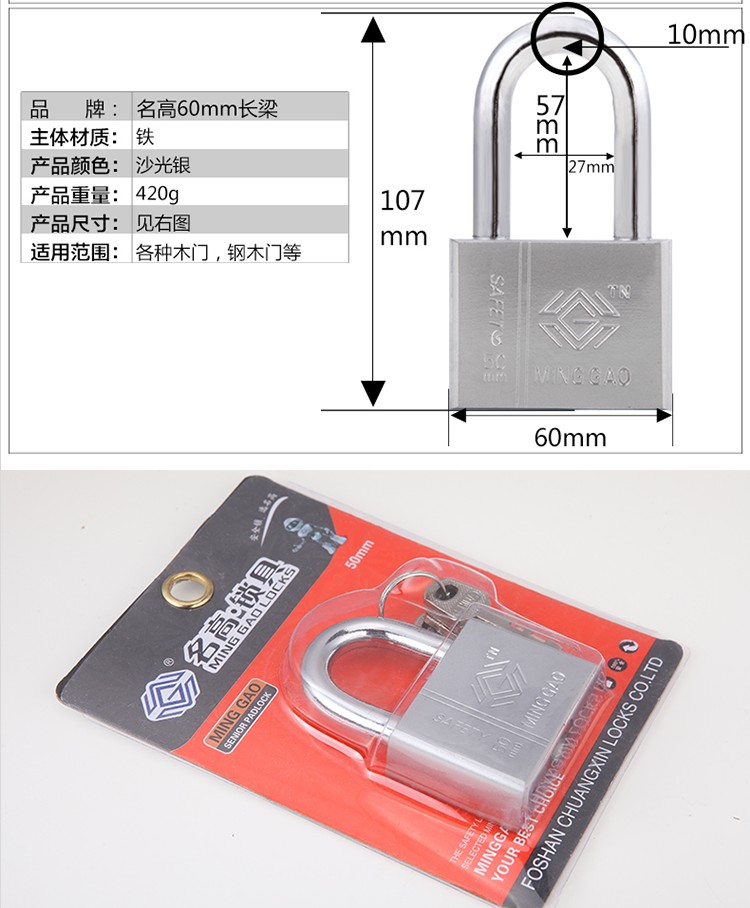 商品名称:名高 挂锁长梁短梁挂锁学生宿舍防砸防剪不锈钢仓