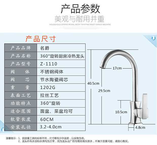 商品名称:名爵 厨房304不锈钢水龙头 无铅水槽冷热龙头 MEJUEZ-1110