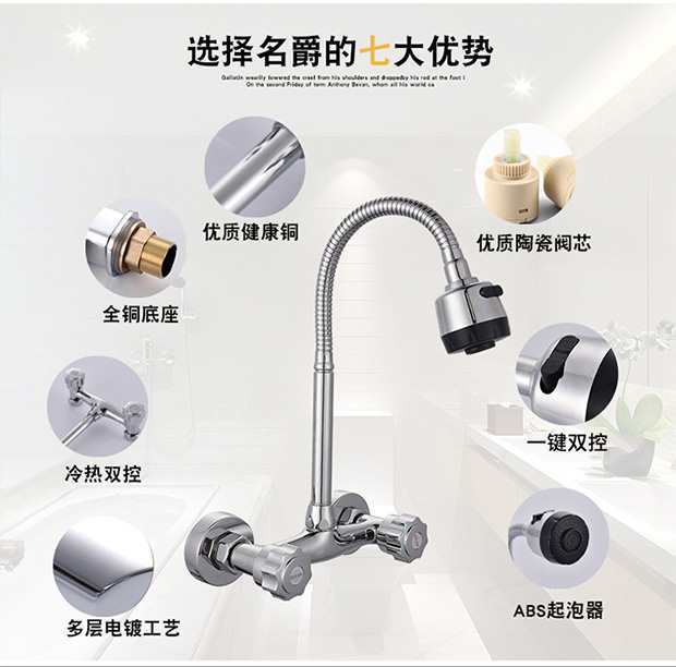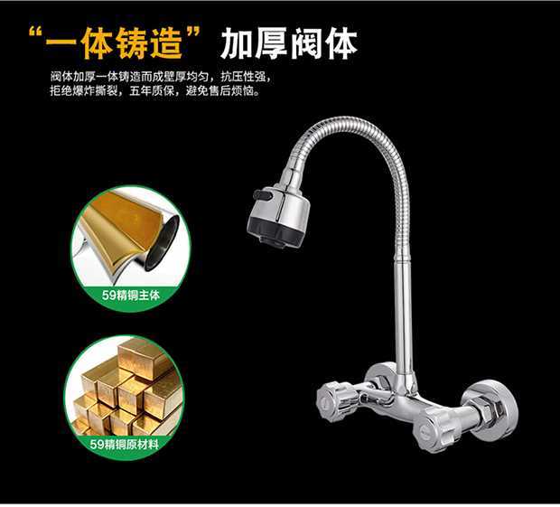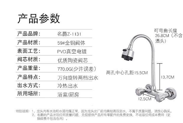 商品名称:名爵 全铜入墙式双孔水龙头 万象旋转厨房冷热水龙头 MEJUEZ-1131