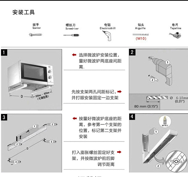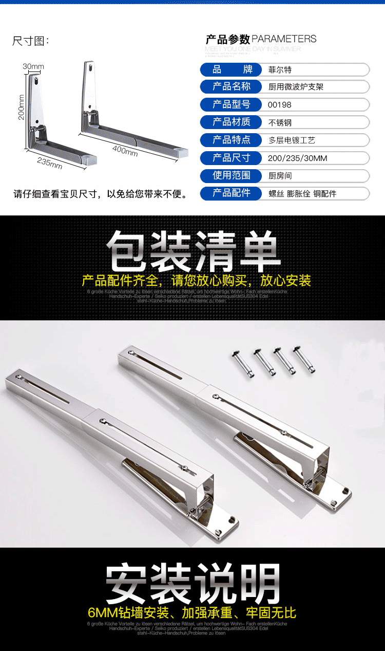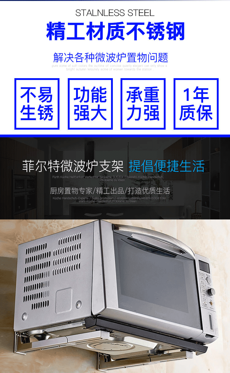 商品名称:菲尔特 厨用微波炉支架 强悍承重加厚不锈钢耐磨牢固壁挂式托架
