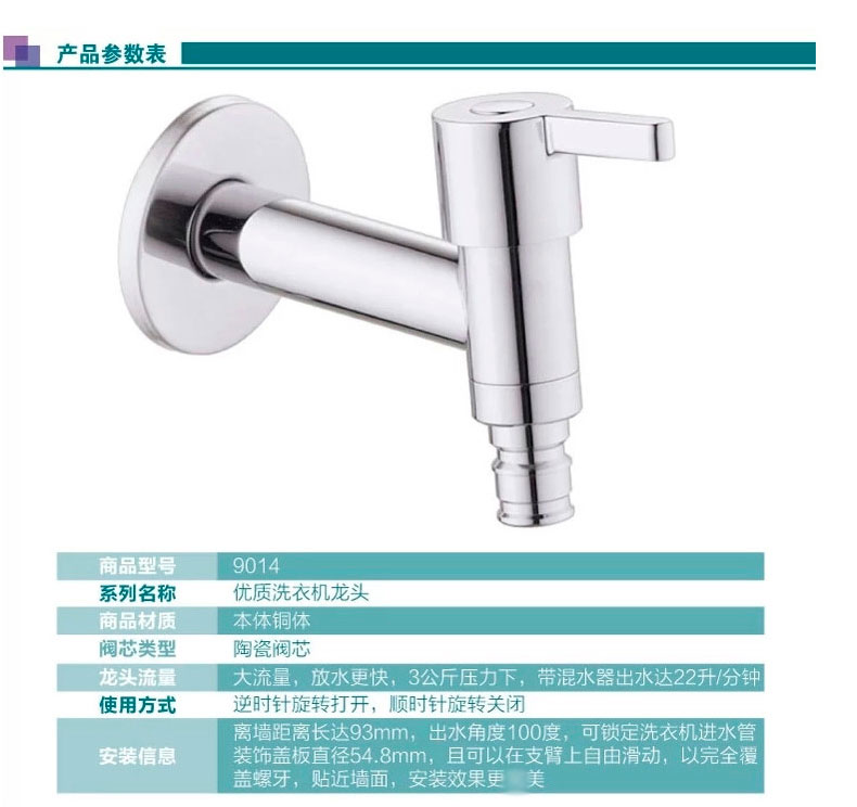 商品名称:摩恩 洗衣机龙头单冷水嘴4分 加长快开洗衣机水龙头全铜 9014
