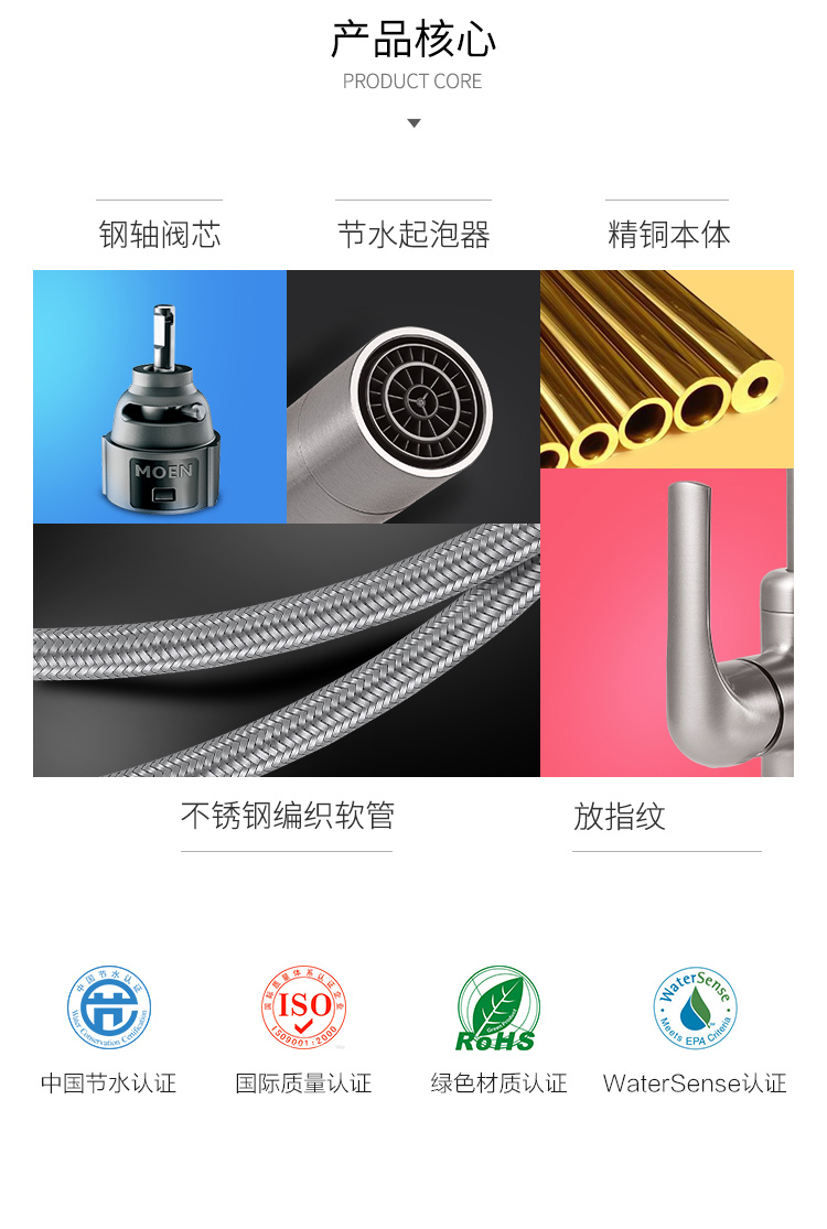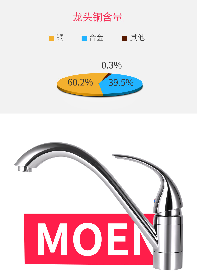 摩恩 铜体厨房龙头 单孔冷热水可旋转水槽洗菜盆 水龙头 17111