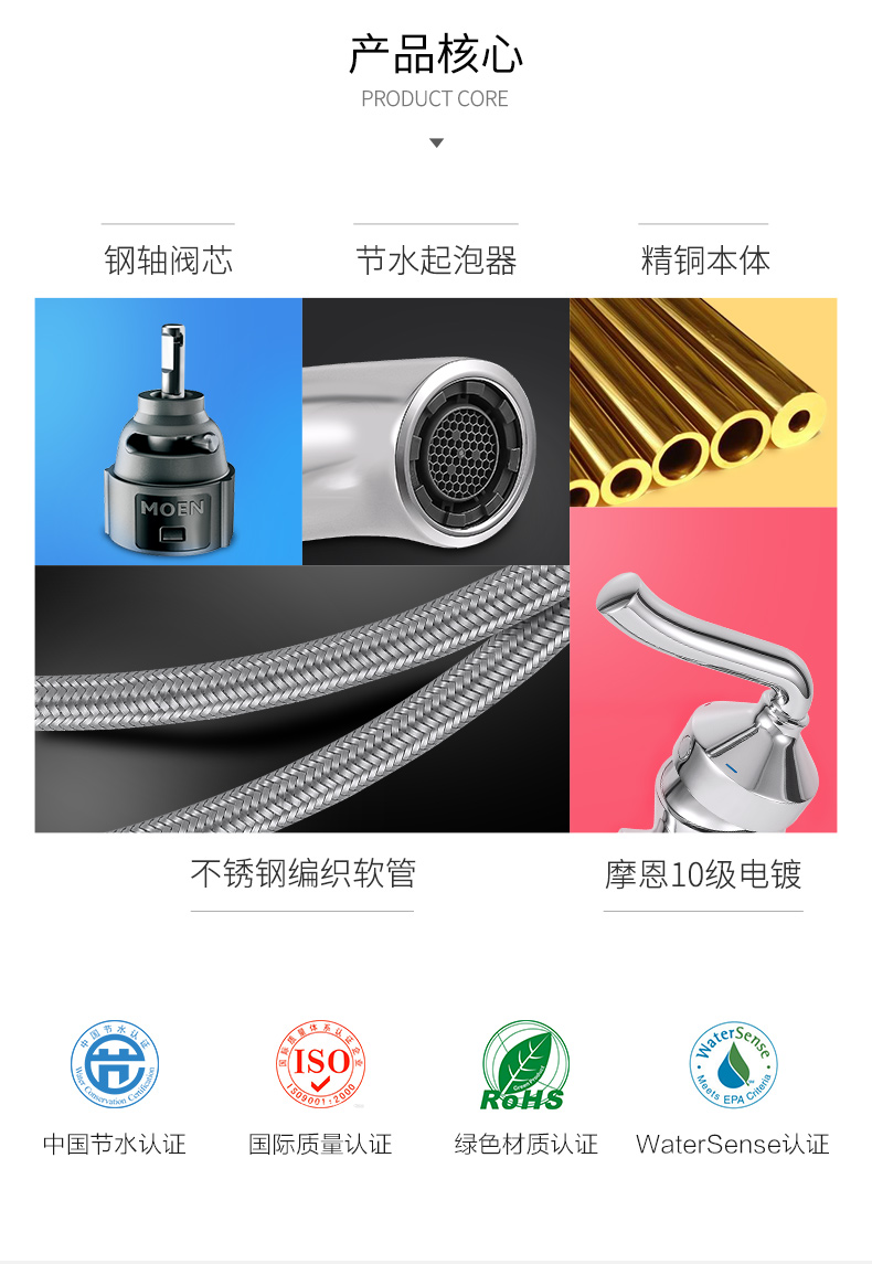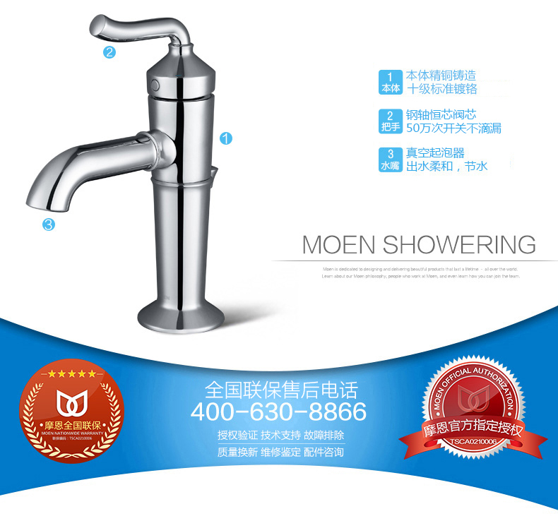 摩恩 水龙头新古典单把手冷热龙头洗脸台面盆龙头洗手池水嘴 16121