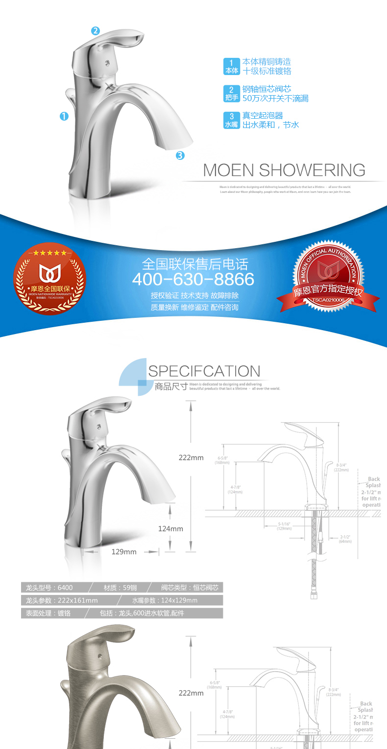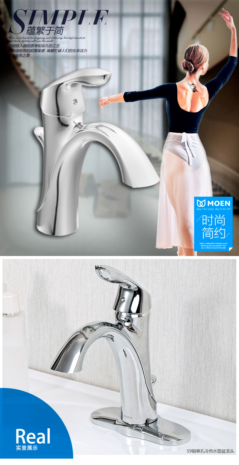 商品名称:摩恩 复古卫生间洗脸盆面盆冷热卫浴单把单孔台盆脸盆水龙头 6400BN