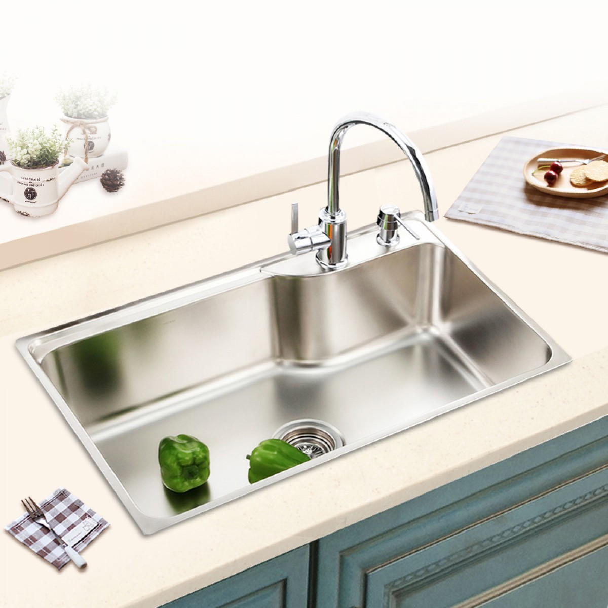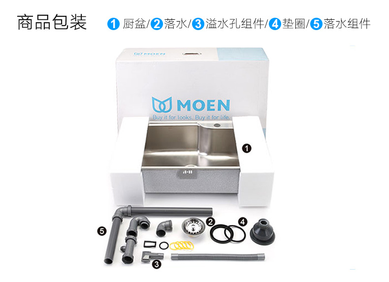商品名称:摩恩 优质304不锈钢磨砂单槽加厚厨房水槽龙头洗菜盆水池套餐 22179