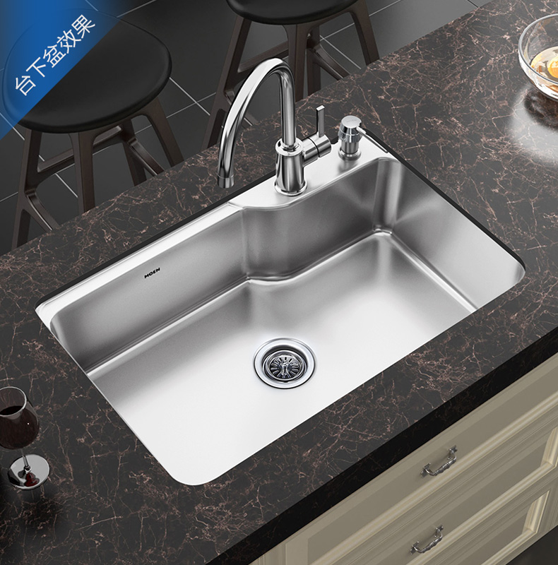 摩恩 优质304不锈钢磨砂单槽加厚厨房水槽龙头洗菜盆水池套餐 22179