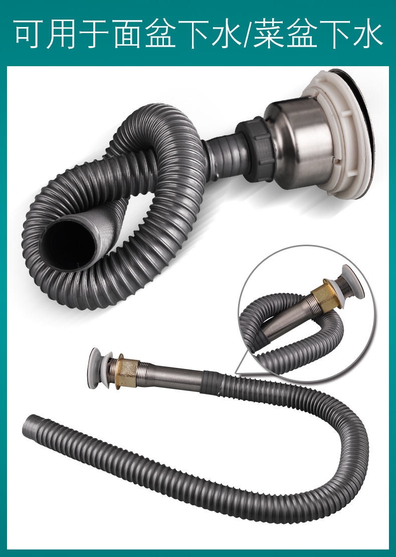 潜水艇 面盆下水管洗衣槽拖把池洗下水软管手盆脸盆菜盆洗衣机水管波纹管 0.8m
