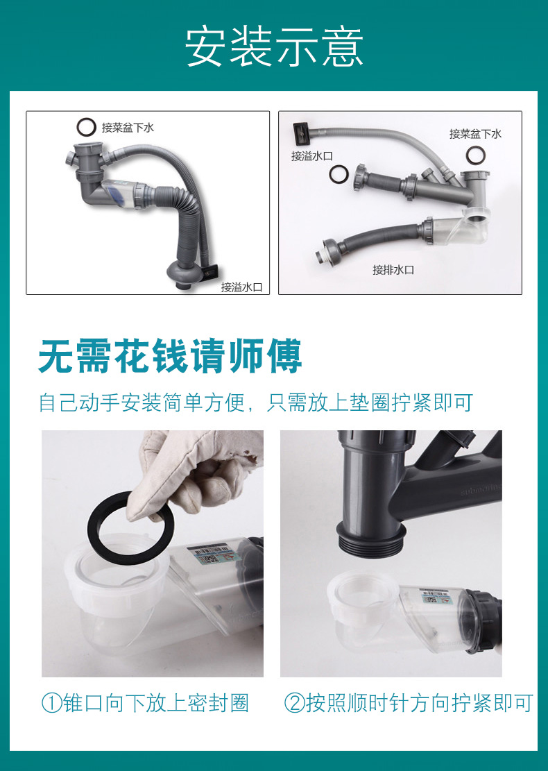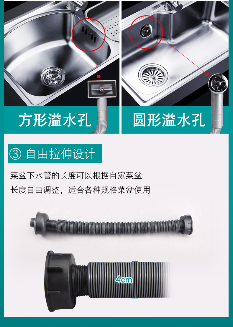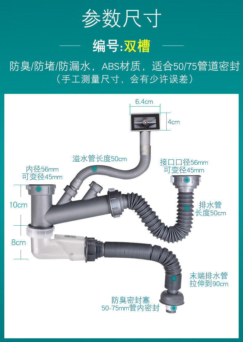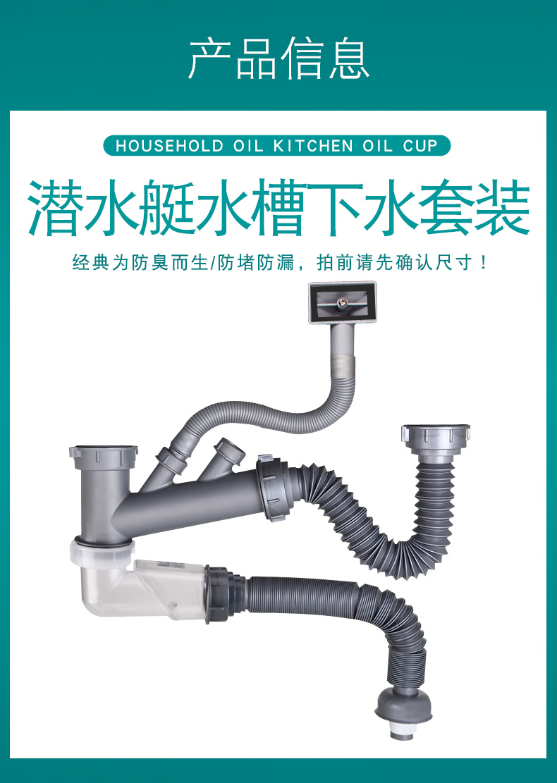 商品名称:潜水艇 水槽下水管双槽 厨房洗菜盆下水器防臭软管提蓝配件套装