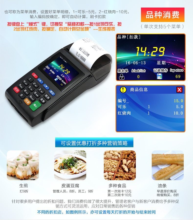 商品名称:吉炬 手持消费机刷卡机食堂饭卡机消费收费IC卡餐厅小票打印一体