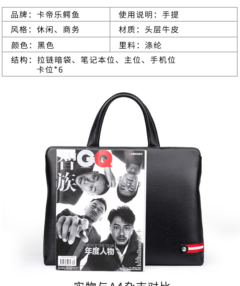 商品名称:卡帝乐鳄鱼 手提包商务休闲皮包横款单肩包斜挎包 L54654679