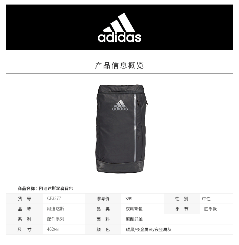 商品名称:阿迪达斯 TRAINING BP运动休闲中性款双肩包 四季款 CF3277